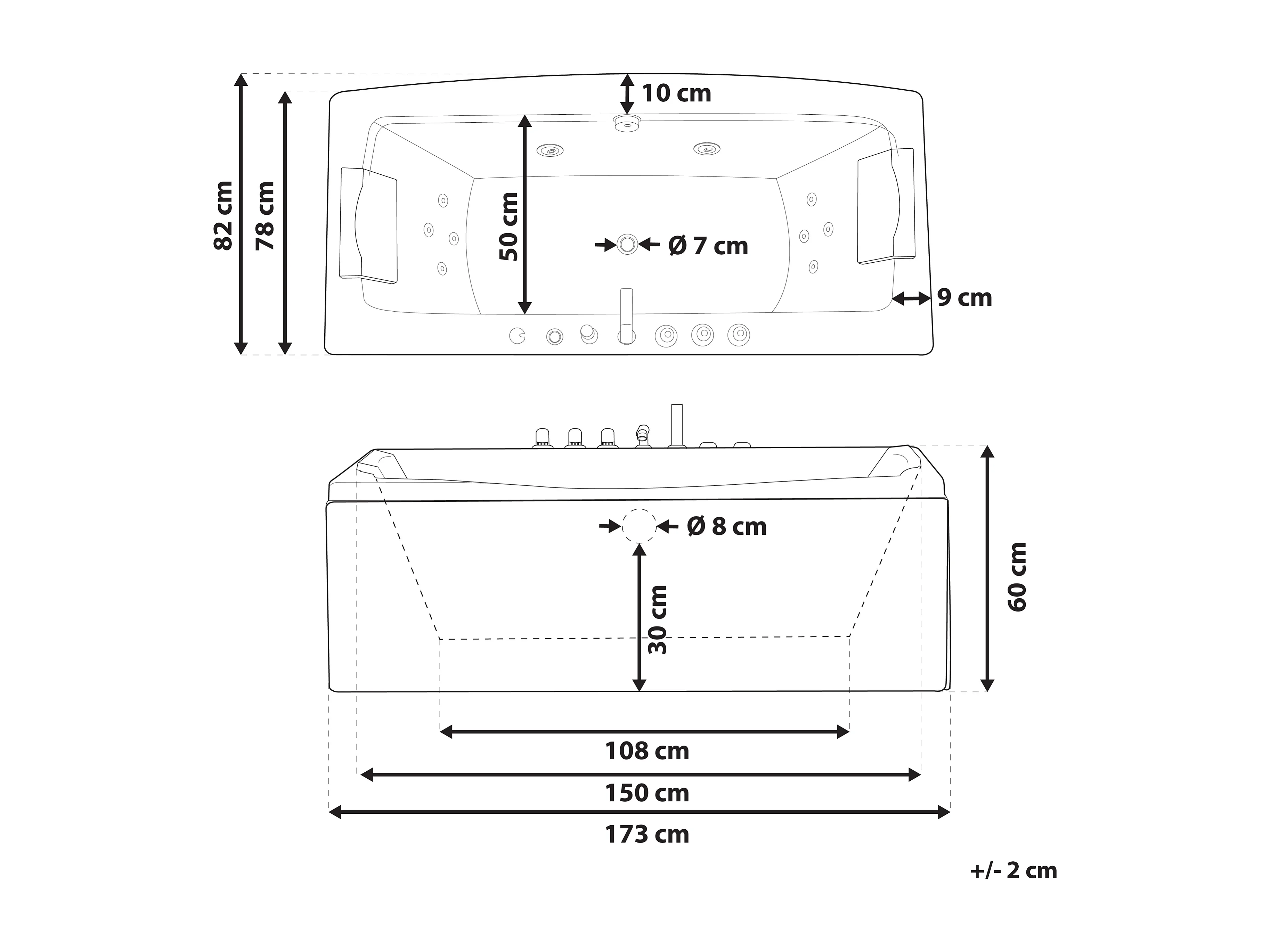 Luxus Whirlwanne Badewanne Spa weiß rechteckig Doppelwanne mit Massage LED Moor