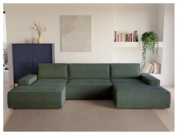 Große Wohnlandschaft mit Schlaffunktion - Cord - Tannengrün - AMELIA