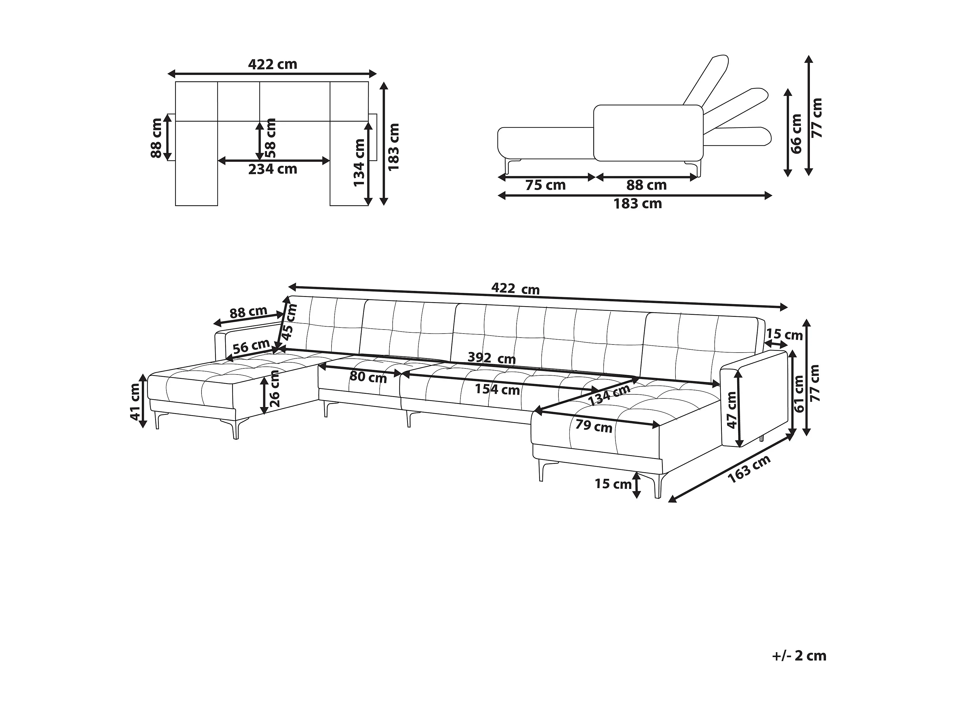 U-förmiges Modul Schlafsofa ALNES Samtstoff Hellrot 6-Sitzer