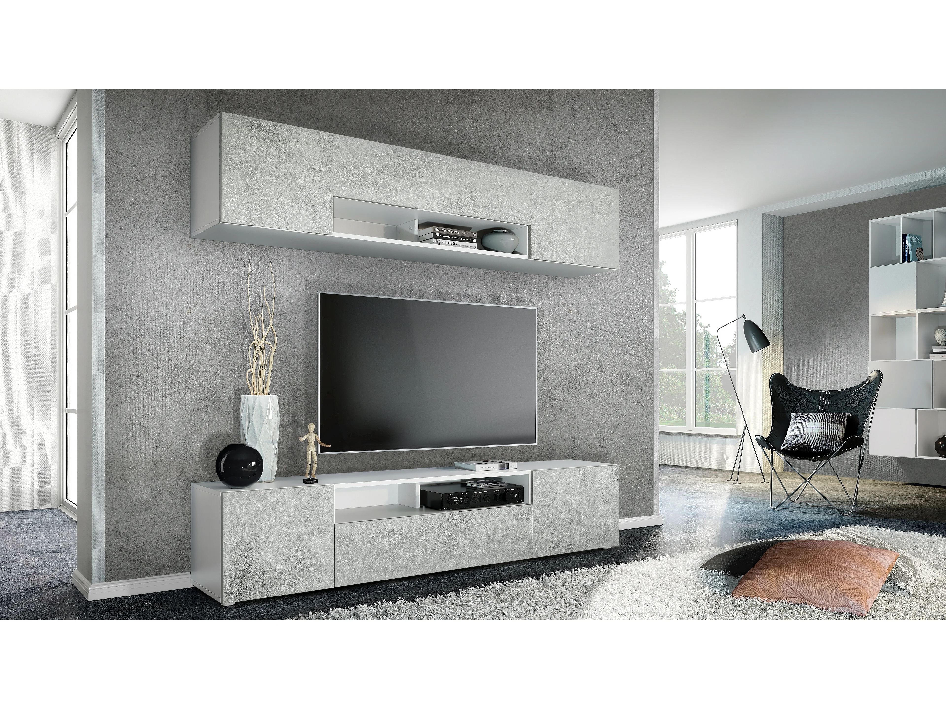WOHNWAND Mogan Fronten in Beton Oxid Optik
