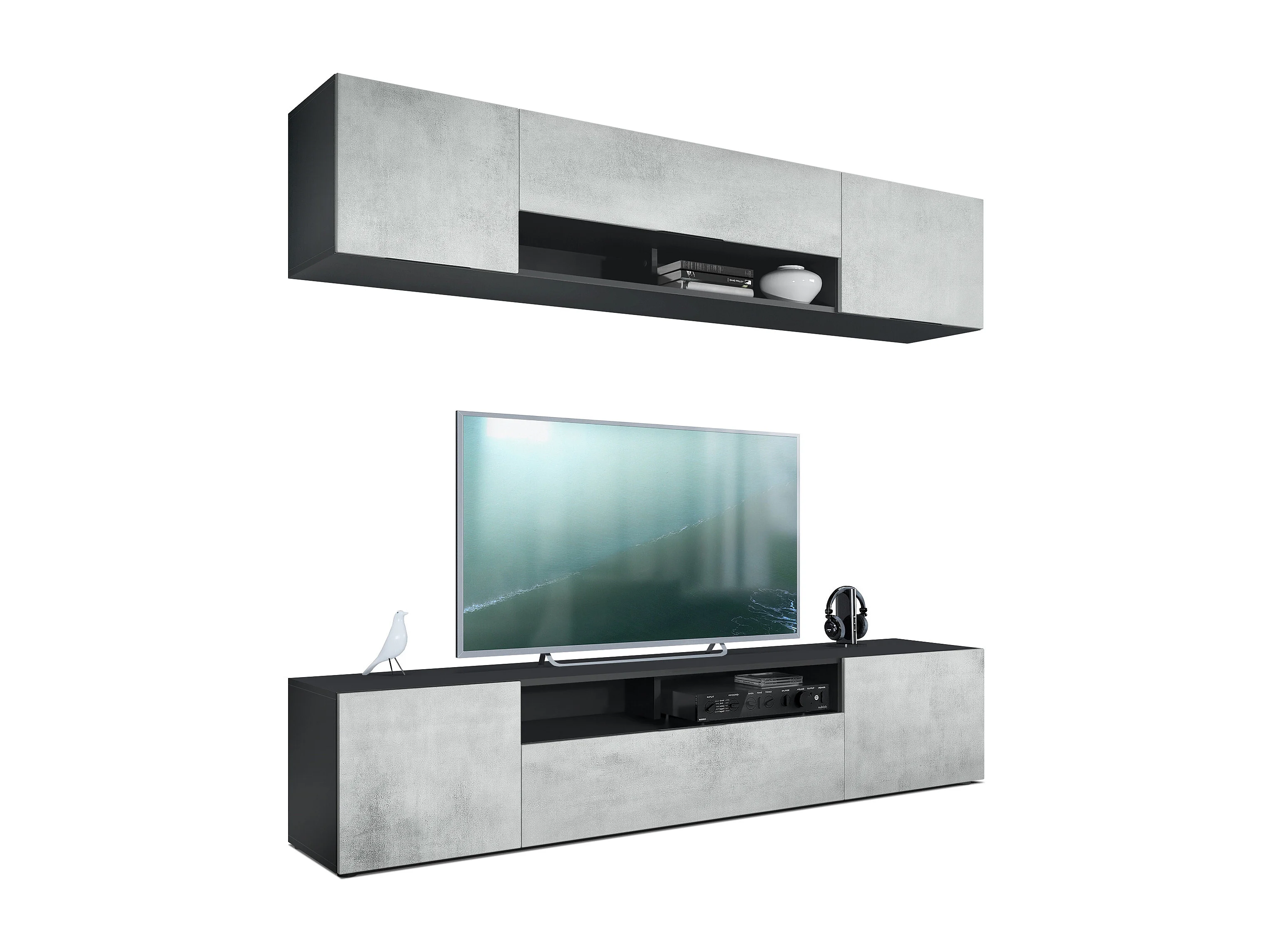 WOHNWAND Mogan Fronten in Beton Oxid Optik