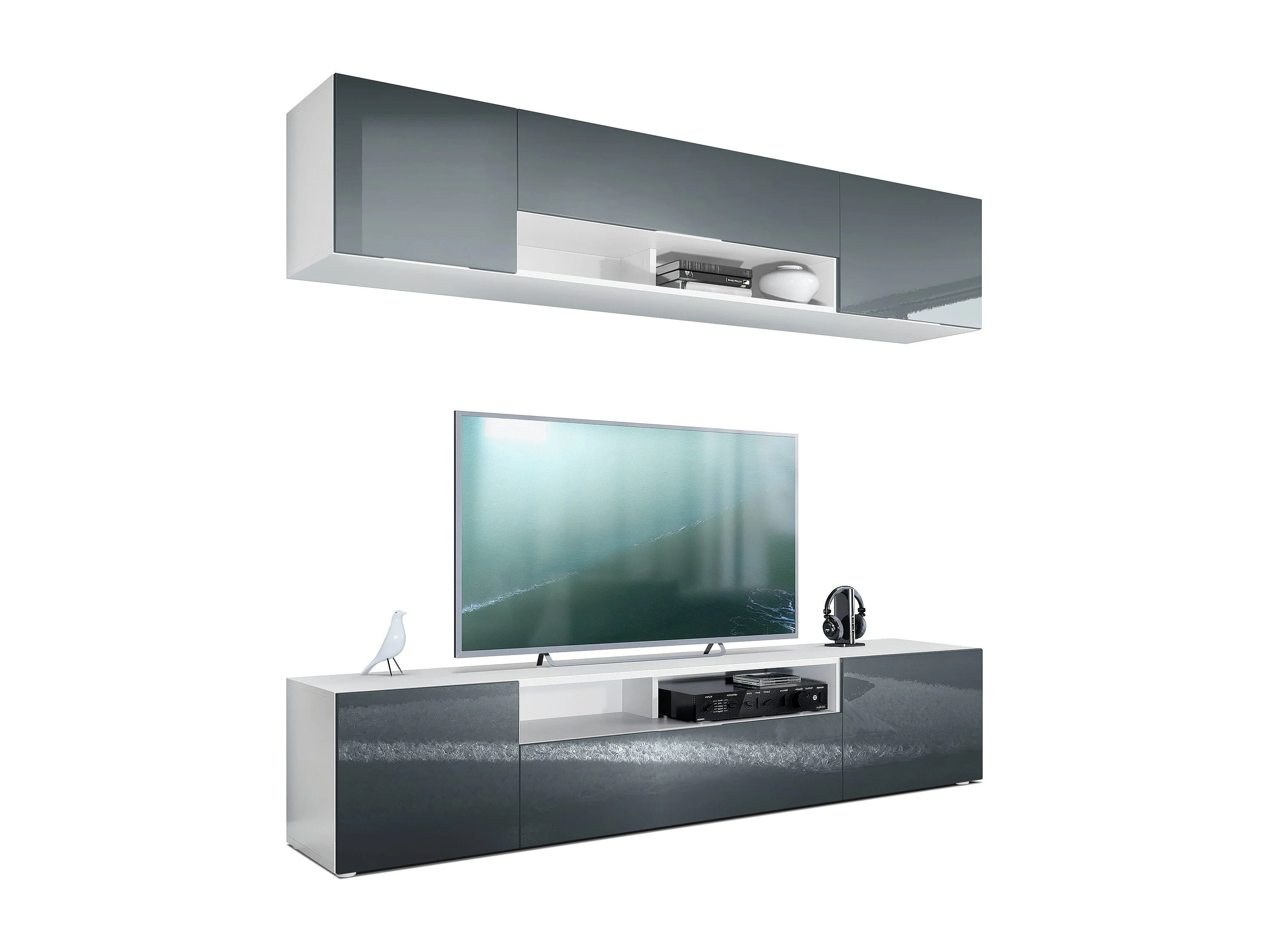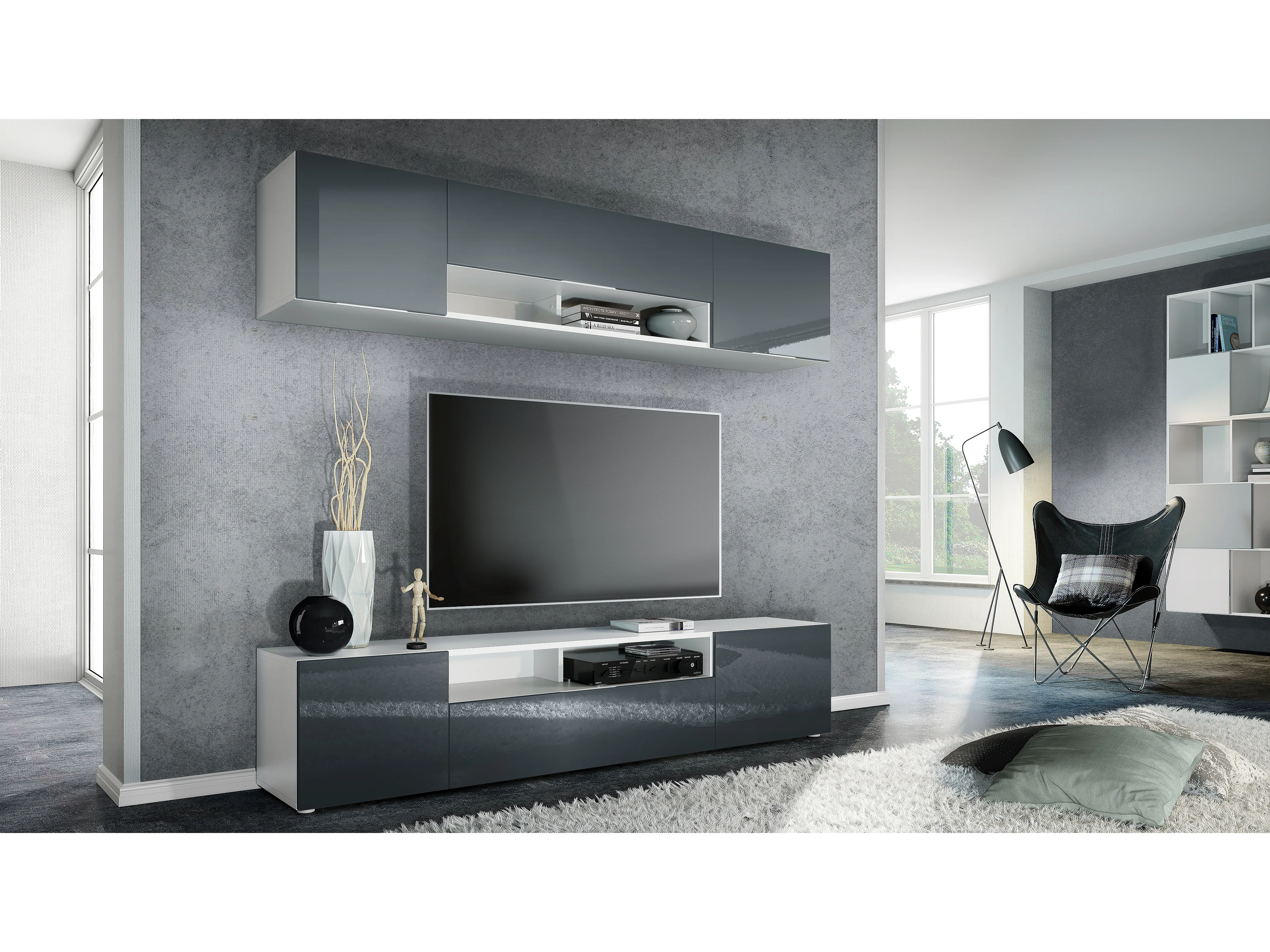WOHNWAND Mogan Fronten in Grau Hochglanz