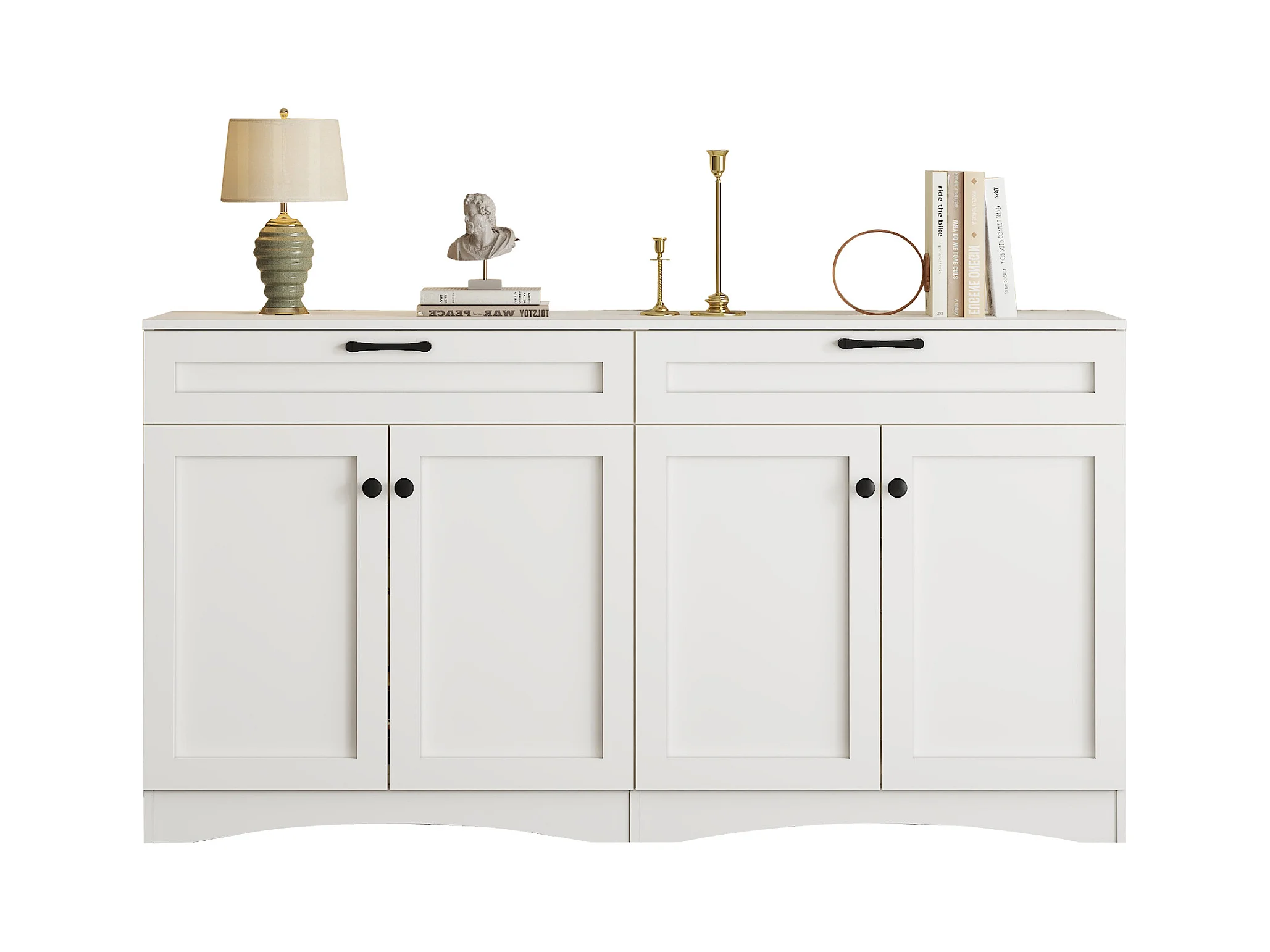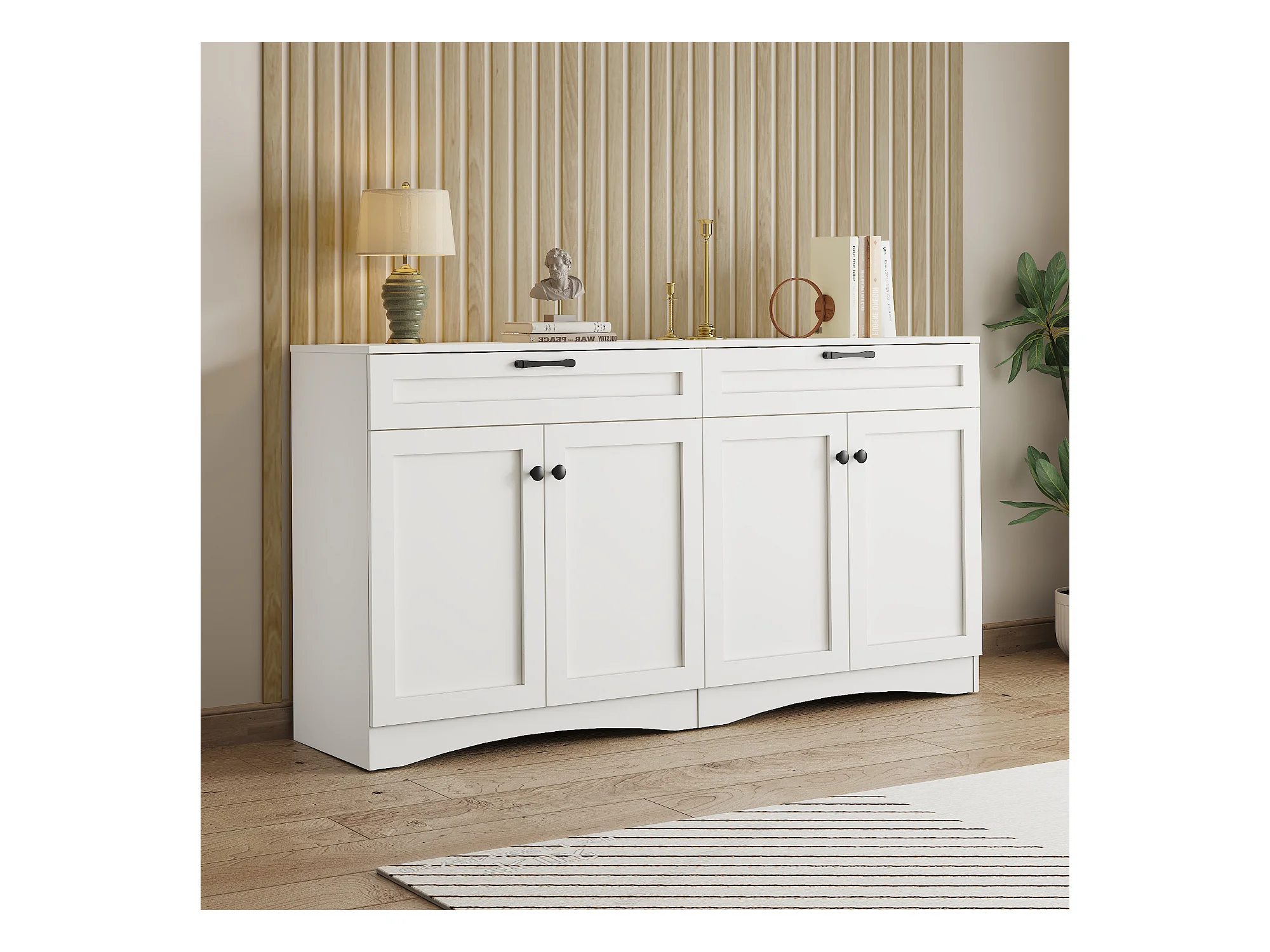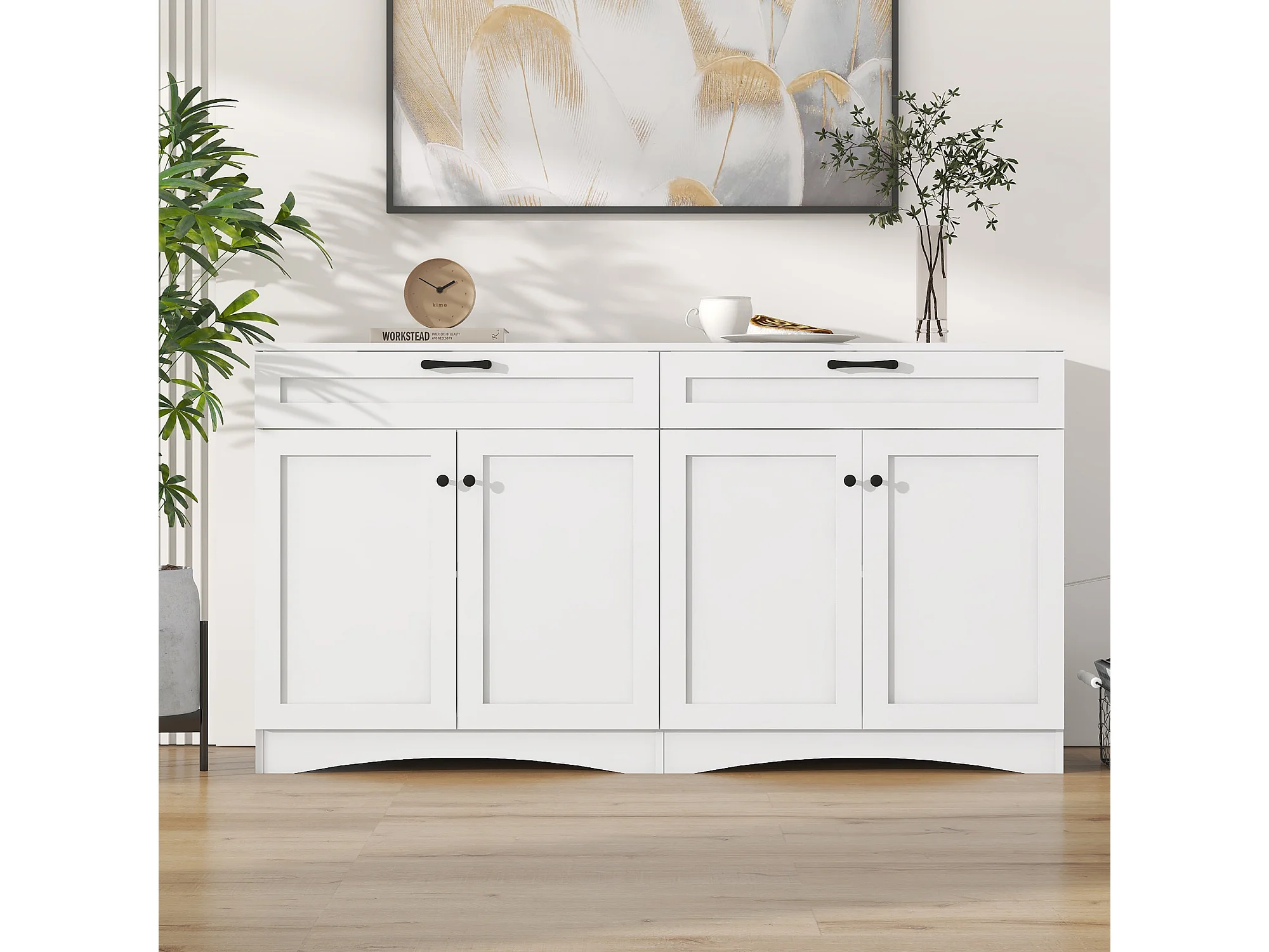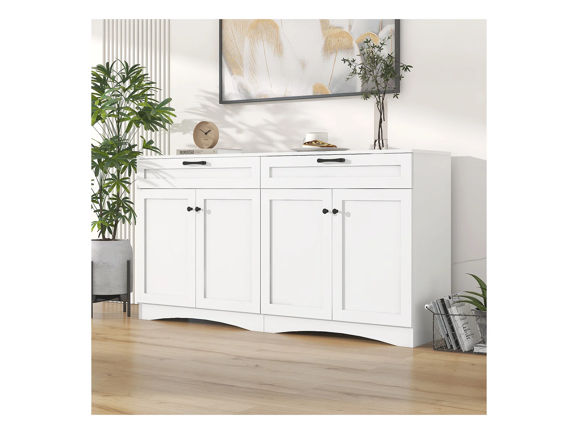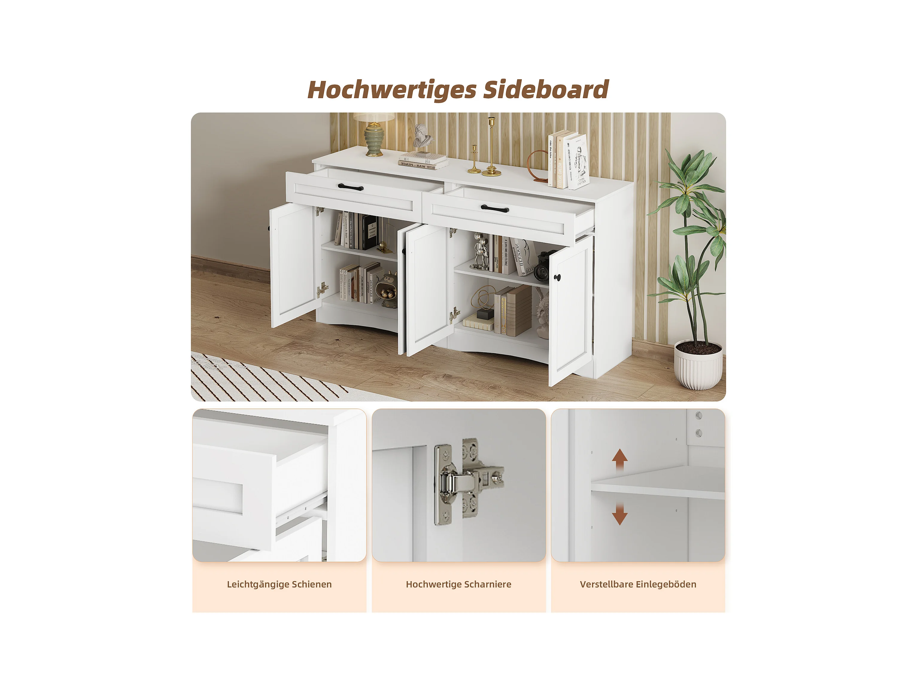 Wohnzimmer Sideboard - 160 x 40 x 85 cm - mit 2 Schubladen + 4 Türen - Beistelltisch - Spanplatte - Weiß