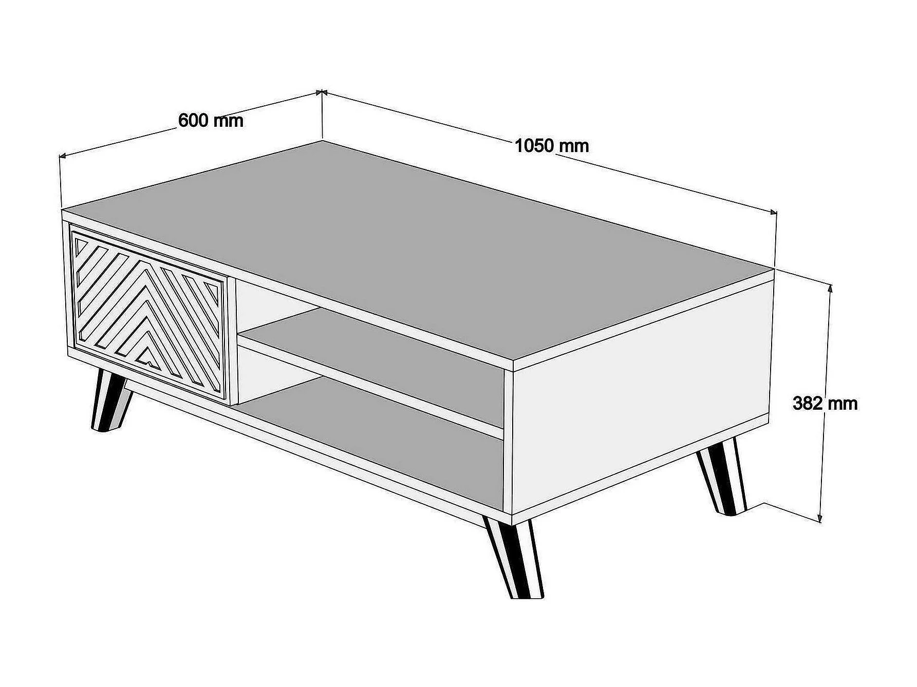 Wohnzimmertisch Dpratell, Niedriger Wohnzimmertisch, Kaffeeregal, Couchtisch für Sofa, 105x60h38 cm, Walnuss und Weiß