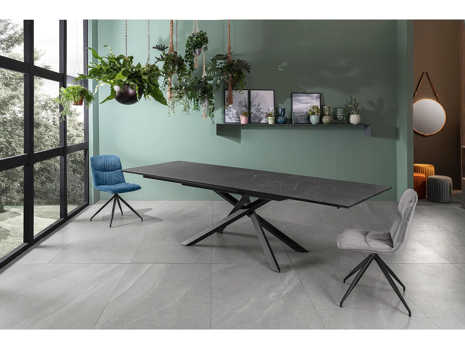 Xavier - Ausziehbarer Tisch (170/270 x 90 cm) aus HPL auf schwarzem MDF