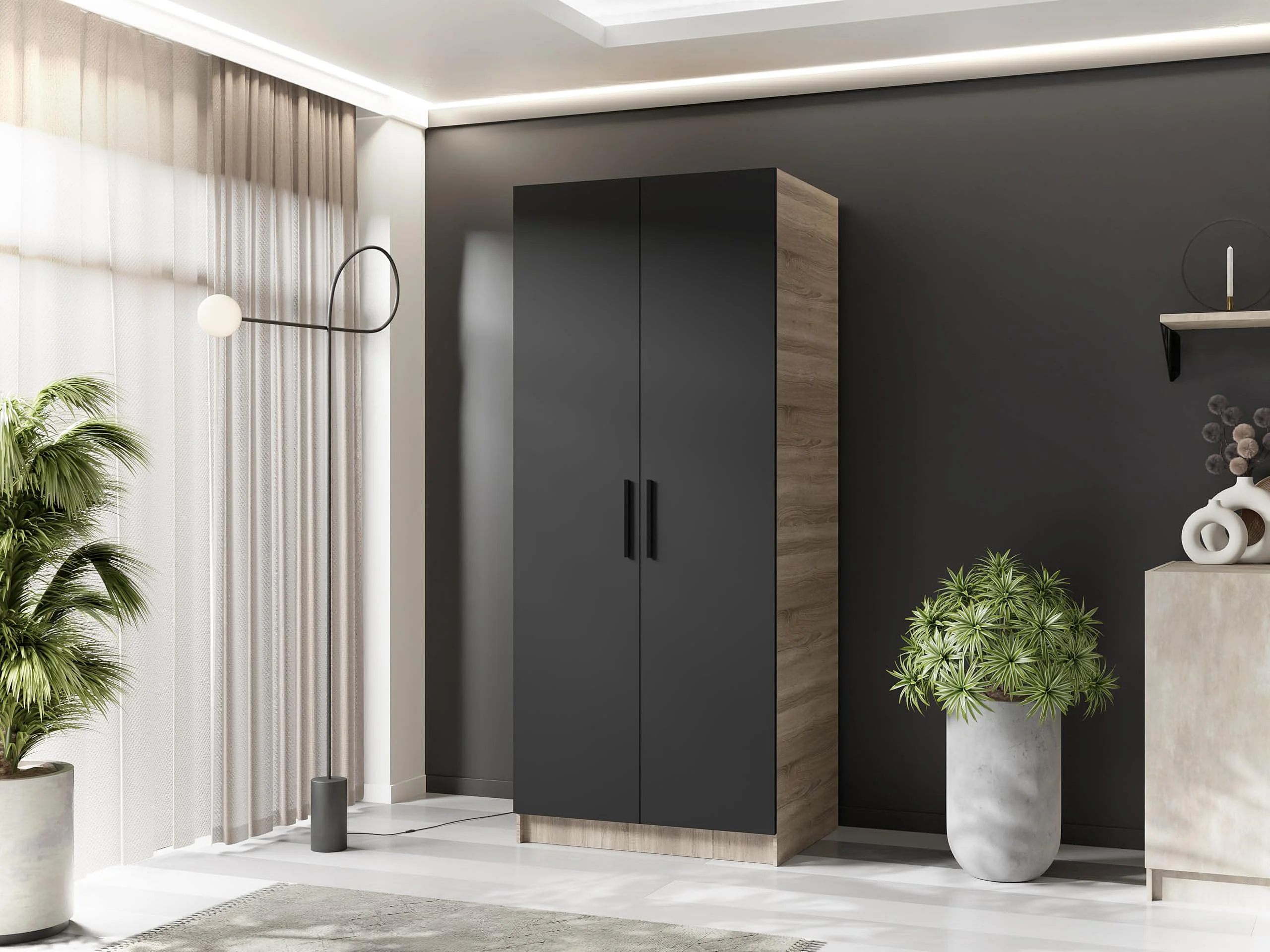 Zweitüriger Kleiderschrank GOLD 2D 78 Eiche Sonoma + Schwarz